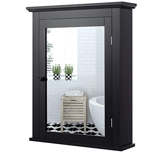 Giantex Spegelskåp för badrum, MDF-vägg, med höjdjusterbar hylla, väggskåp, väggskåp, 56 x 15 x 69 cm, 4 färger (svart)