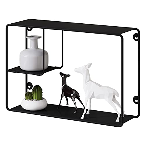 EUGAD Flytande skal i metall, 3-nivås vägghylla, väggdekor i industriell stil, hopfällbar liten hylla för kök, badrum, vardagsrum, sovrum, svart (rektangel)