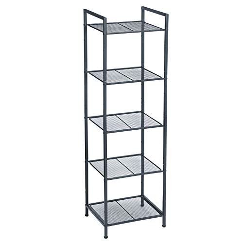 SONGMICS badrumshylla av metall, kökshylla, 5 nivåer, badrumshylla, stående hylla, planthylla, utbyggbara, justerbara hyllor, industridesign, för badrum, kök, svart BSC35BK
