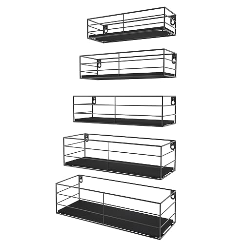 EYMPEU Vägghylla med 5, svävande hylla med klassisk svart träbräda och svart metall för kök, badrum, vardagsrum och kontor