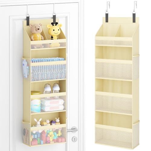 Lifewit Baby över dörren, hängande hylla, 35 x 14 x 108,5 cm, hängande hyllor med genomskinliga fickor för mjuka leksaker för barnrum, babyartiklar i skafferi, sovrum, garderob, beige