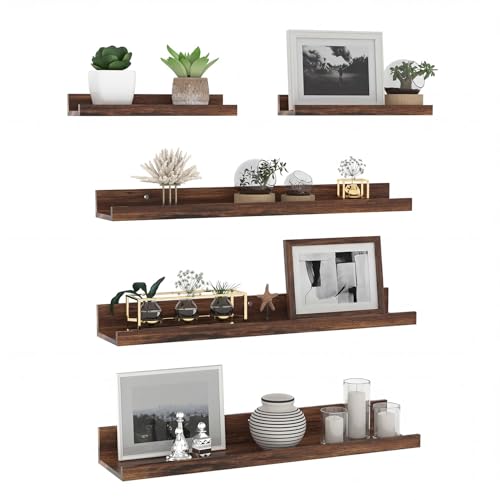 Giftgarden 60 cm lång vägghylla trä, brun, liten svävande hylla, bildlist för vardagsrum, kök, barnrum, sovrum eller kontor – 5 stycken med olika storlekar