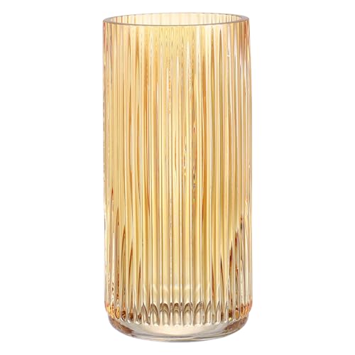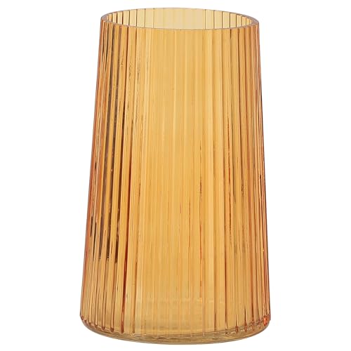 KAYLETIN Ribbad glasvas, Bärnsten glasvaser för blommor, blomvaser för buketter, modern ribbad vas för sovrum, vardagsrum, kontor, hylla, 20 cm