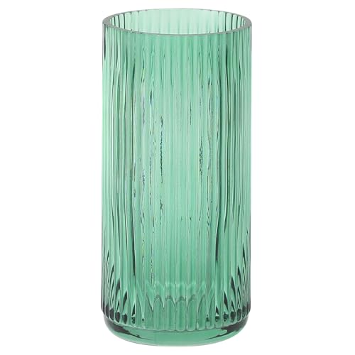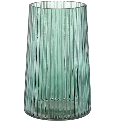 KAYLETIN Ribbad glasvas, gröna glasvaser för blommor, blomvaser för buketter, modern ribbad vas för sovrum, vardagsrum, kontor, hylla, 20 cm
