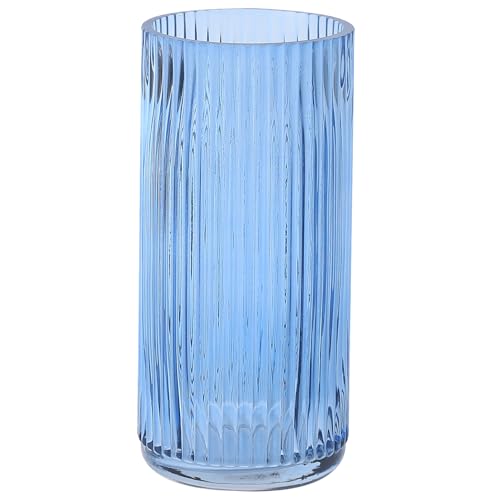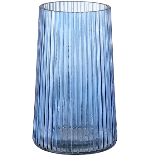 KAYLETIN Ribbad glasvas, Blå glasvaser för blommor, blomvaser för buketter, modern ribbad vas för sovrum, vardagsrum, kontor, hylla, 20 cm