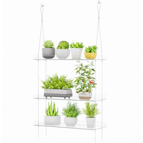 Hängande genomskinliga växthyllor för fönster, 3-nivåer akryl fönster vägg växtstativ hylla för kök fönster inomhus trädgårdar, blommor, suckulenter, ört, fröorganisation och växter krukor display