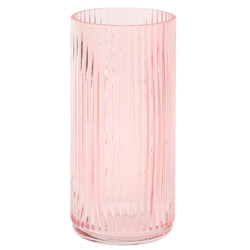 KAYLETIN Ribbad glasvas, Rosa glasvaser för blommor, blomvaser för buketter, modern ribbad vas för sovrum, vardagsrum, kontor, hylla, 20 cm