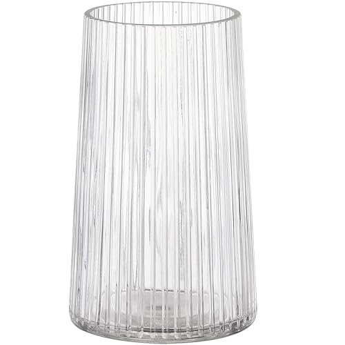 KAYLETIN Ribbad glasvas, Transparent glasvaser för blommor, blomvaser för buketter, modern ribbad vas för sovrum, vardagsrum, kontor, hylla, 20 cm
