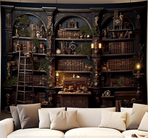 QGHOT medeltida gobeläng, vintage bokhylla gobeläng vägghängande retro bibliotek gobelänger, gamla böcker hylla studierum student studentrum sovrum vardagsrum konst väggdekor stor bakgrund 228 x 178
