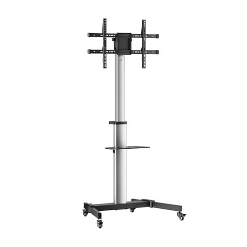 AISENS FT86TRE-197 - Golvstativ med hjul, 50 kg, DVD-hylla för bildskärm/TV 37–86, svart-silver
