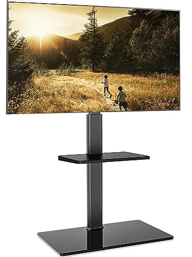 FITUEYES TV-golvstativ för 32 till 60 tum, universellt hörn-TV-stativ med justerbar hylla, svängbar, bärbart TV-stativ för kontor, konferensrum, sängkant, max. VESA 600x400 mm, enkel montering, svart