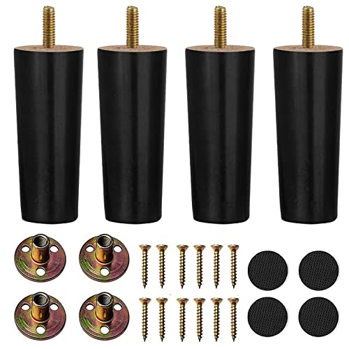 XineYuor 4 st möbelben i trä, svarta träsoffben med monteringsplattor och skruvar, träben för hylla, soffa TV-skåp, säng matbord (12 cm/4,72 tum, svart)