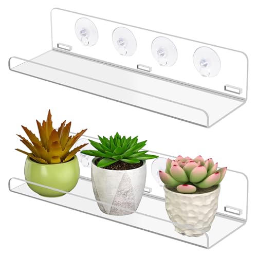 Fönsterväxthyllor, 2 stycken sugkoppshyllor för växter fönster 30 cm, växtstativ för fönster med 8 sugkoppar, transparent hylla sugkopp, vägghylla för inomhusträdgårdar, inomhusväxter