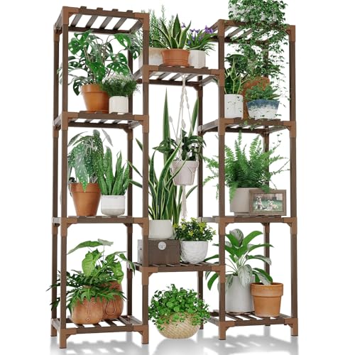 Bamworld Hylla i trä för växter, för inom och utomhusbruk, hängande hylla, för flera växter, hög, stor, för vardagsrum uteplats, balkong eller trädgård, brun