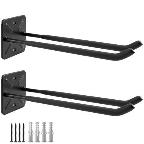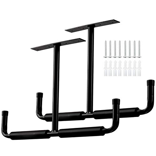 Ihomepark Overhead garage förvaringskrokar hylla takmonterad, kraftiga verktygskrokar stege hängare för hängande slangrör virke och andra skrymmande föremål (2-pack, svart)