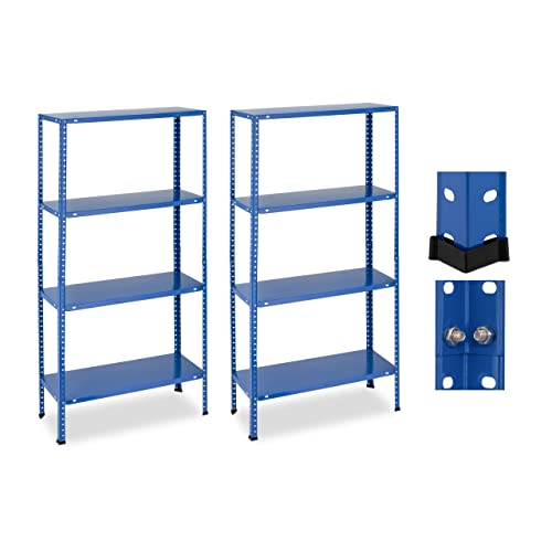 Relaxdays Hylla för tung last, set om 2, HBT 147,5 x 75,5 x 30,5 cm, 160 kg, stål, 4 nivåer, lagerhylla, källare, garage, blå