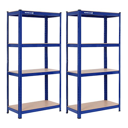Songmics Tung lasthylla, set om 2, förvaringshyllor, källarhylla, 40 x 80 x 160 cm, kan belastas upp till 520 kg, 4 justerbara hyllor, metallhylla, hylla, verkstadshylla, källare, garage, blå GLR88Q