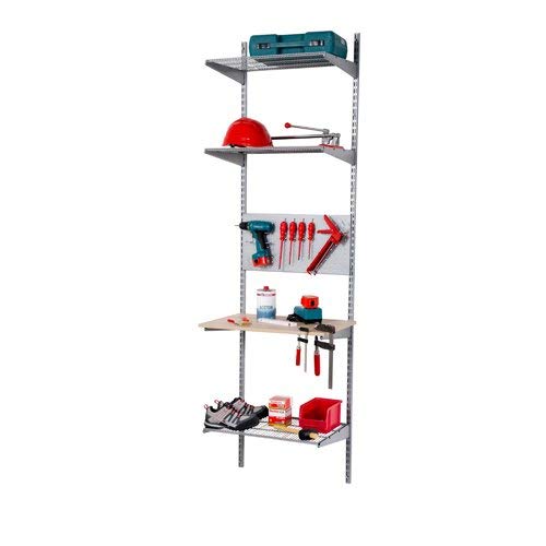METALLMOBELL - väggverktygsförvaring 160 x 60 x 2 cm, 4 perforerad väggpanel 40 x 60 x 2 cm, krokar och hållare, förvaringshylla garage för gör-det-själv-verktyg, hylla garage HPTH01G