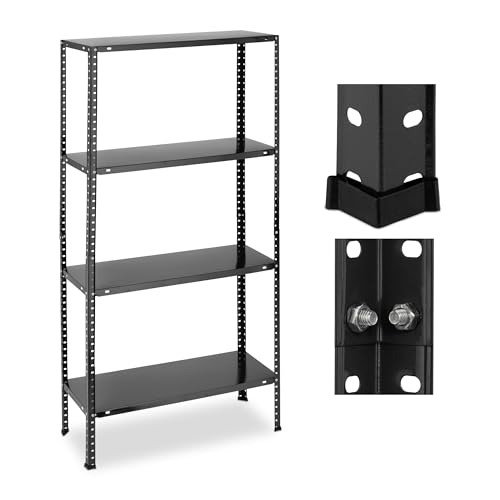 Relaxdays Hylla för tung last, lastkapacitet 160 kg, 4 nivåer, HBT 147,5 x 75,5 x 30,5 cm, källare och garage, metallhylla, svart