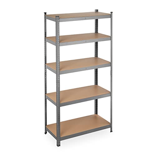 Relaxdays Hylla för tung last, lastkapacitet 875 kg, 5 nivåer, för anslutning, källare, garage, stål, H x B x D: 180 x 90 x 45 cm, grå