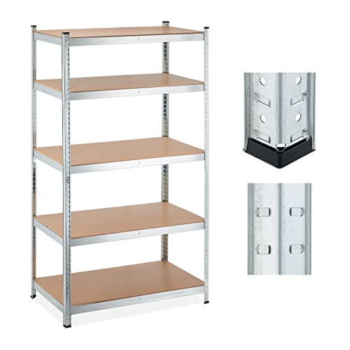 MBI - vill göra - metall garage hylla - 180x90x40 Cm - hylla 5 hyllor för garage järnprofil robust och hållbar hylla trä metall hylla garage (2, Galvaniserad)