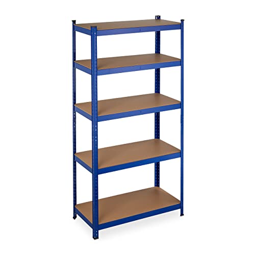 Relaxdays Hylla för tung last, HBT: 150 x 75 x 30 cm, lastkapacitet: 875 kg, 5 golv, för fastsättning, källare och garage, stål, blå