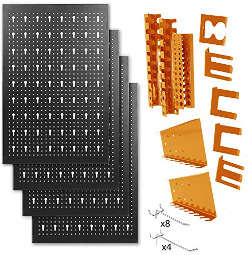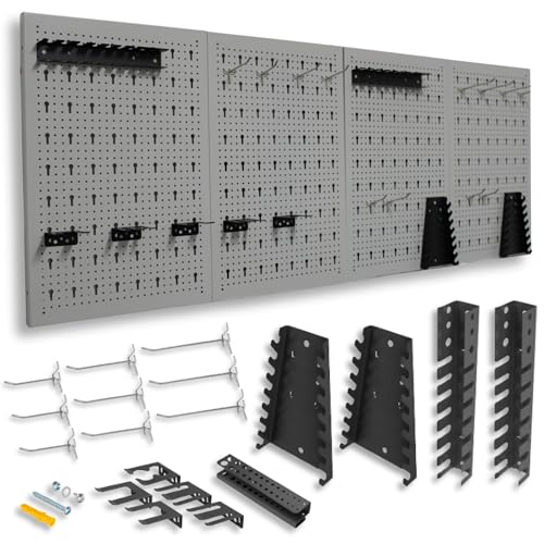 METALLMOBELL - väggverktygsförvaring 160 x 60 x 2 cm, 4 perforerad väggpanel 40 x 60 x 2 cm, krokar och hållare, förvaringshylla garage för gör-det-själv-verktyg, hylla garage -HPTH001