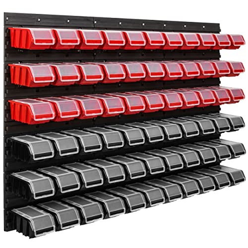 VEVOR Väggmonterade förvaringskorgar, 48 tunnor delar hylla, organiserare, garage, plast, butiksverktyg med väggpaneler, verktygsorganisatör för muttrar, bultar, skruvar, spikar, pärlor, knappar,