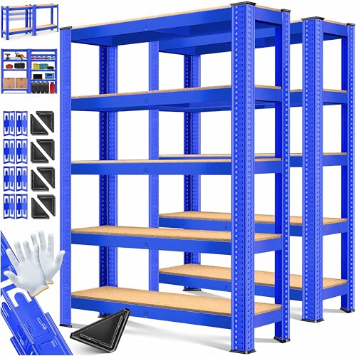 T- Rax Garage Hyllenhet Extra bred Blå - 5 Hyllor Slitstark Ställning Förvaring Stål Verktygshyllor Lager Lagerhyllor Garage Metall & MDF Bultlöst Monteringssystem 1400 kg kapacitet 280 kg per hylla