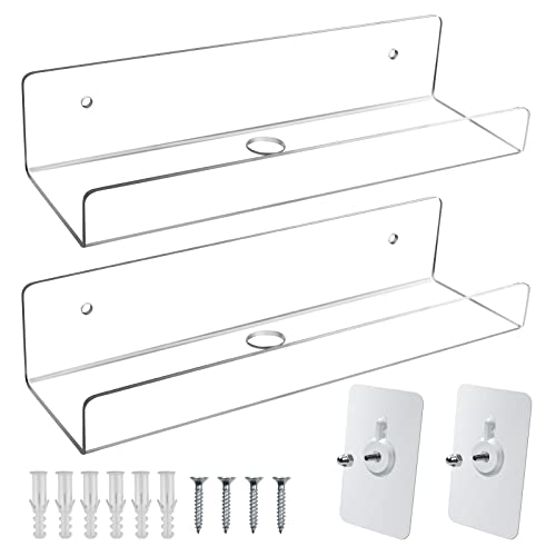 Mocoosy 2-pack flytande hyllor i akryl, klar väggmonterad hylla, liten bild, takkant, väggvisningshylla för smart högtalare/skärm, osynliga kryddställ, väggförvaringshyllor för badrum, kontor, hem