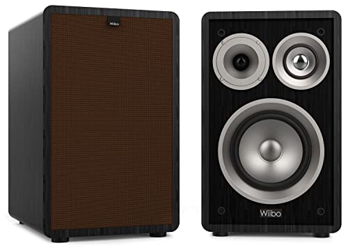 Wiibo Vintage 6 svart – Hi-Fi-högtalare för hylla – effekt 100 W – 3-vägs högtalare – avtagbart rutnät – 2 tums diskanthögtalare, 7,6 cm (3 tum) squawker och 5 tums woofer – surroundljud