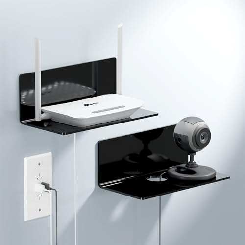 Toski Vägghylla utan borrning, uppsättning av 2 självhäftande hyllor, liten 23 cm bred, svävande hylla i akryl för badrum/vardagsrum/sovrum/kök/kontor, svart