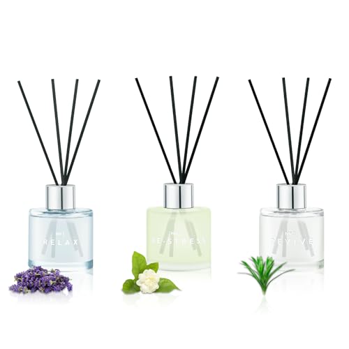 Parfymdiffuser 3 x 50 ml - lavendel geranium/jasmin/vit te, citrongräs, ingefära, doftdiffusor med 12 fiberpinnar, doftdiffusor för sovrum, vardagsrum, badrum, hylla, kontor