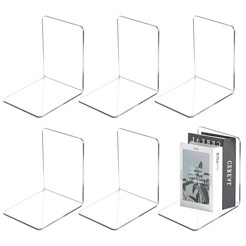HOMURY 6 stycken bokstöd i akryl: transparent bokstöd i akryl halkfritt bokstöd tung bokslut, bokstativ för hylla bibliotek skola kontor, sovrum och skrivbordsorganisering