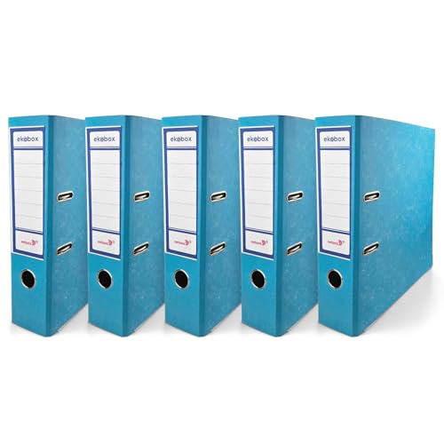 Netuno 5 x mapp mapp 2-ringmapp ekobox marmorerad ljusblå folder organizer 80 mm A4 bred kartong kartong för kontor hylla mappar kontor skrivbord