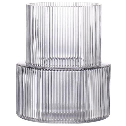 KAYLETIN klar glasvas, ribbade vaser för blommor, blomvas för tulpaner, räfflade moderna vaser för vardagsrum, matsal, sovrum, hylla, bröllop, kontor, soffbord, födelsedag, 19 cm