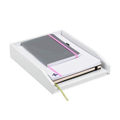 Relaxdays brevpapper, dokumentbricka, bambu, stapelbar, DIN A4, hylla, skrivbord, kontor, HBT 6 x 25 x 33 cm, vit