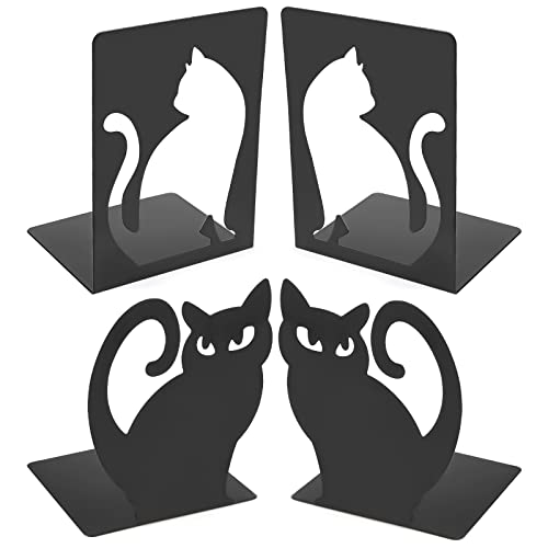 2 par bokstöd metall katt bokstöd halkskydd bokstöd svart bokstativ bokhållare för böcker DVD-skivor bokhållare för hylla, kontor, bibliotek, hem och skola