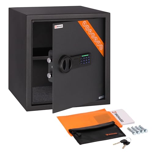 Brihard elektroniskt kassaskåp för företag 40x36x36cm med brandsäker pengaväska, säkerhetsfack 48L med digitalt knappsatslås och avtagbar hylla, kodskåp för kontor, hemsäkerhet