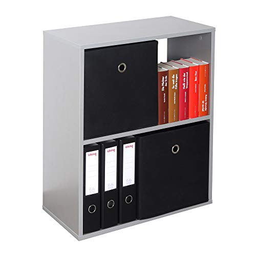 RICOO Bokhylla 2 fack 71 x 60 x 31 cm hylla spånskiva av trä modern grå WM111-PL, stående hylla kontor bokhyllor, hyllor och hyllor, skrivarställ, skrivarhylla, arkivhylla