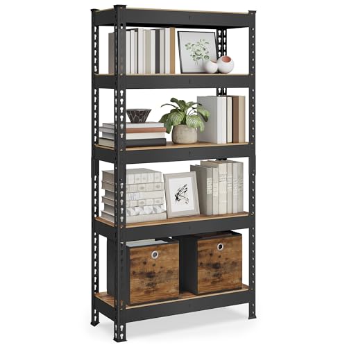 SONGMICS Hylla med 5 nivåer, förvaringshyllor, för studier, bultlös montering, justerbara hyllor, 30 x 75 x 150 cm, belastning 875 kg, för skjul, lager, källare, kök, rustik brun GLR300B11