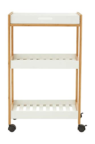 Premier Housewares Nostra 3 nivåer hylla enhet med hjul, bambu, MDF, vit, 35 x 46 x 74