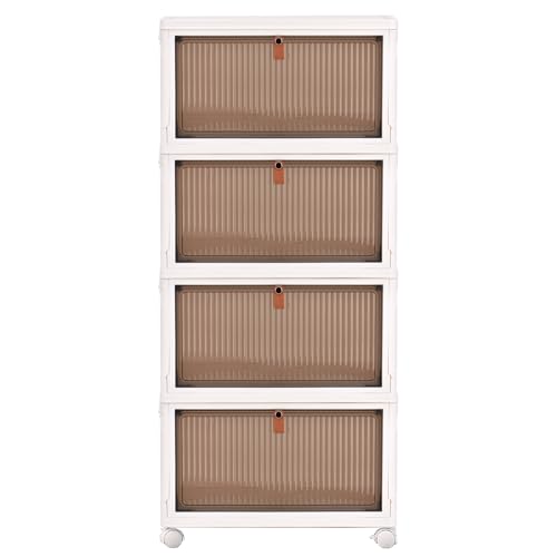 Cozyswan 4-lagers dammtät förvaringsbox hylla plast sängbord på hjul, vita skåp kläder/skor förvaringsböcker/leksaker/mellanmål organiseringsvagn för vardagsrum/sovrum/hall/kontor