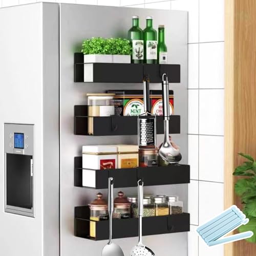 UCAMP 4-pack magnetisk kryddhylla, hängande magnetisk hylla för kryddförvaring, ingen borrning krävs, köksorganisation och mikrovågsugn, kylskåp, svart