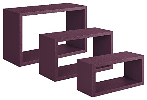 Homemania HOMSAN_074 Inkubo hylla väggdekoration-vardagsrum, sovrum, kontors-MDF, lila 35 X 35 X 15,5/30 X 30 X 15,5/25 x 25 X 15,5