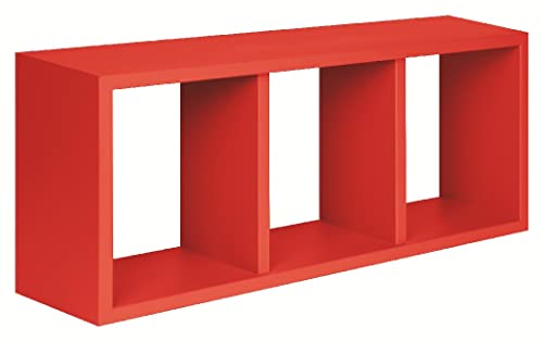 Homemania HOMSAN_099 Trittico hylla väggdekoration-vardagsrum, sovrum, skrivbord-MDF, röd 45 X 27 X 15,5/40 X 22 X 15,5/35 x 17 X 15,5
