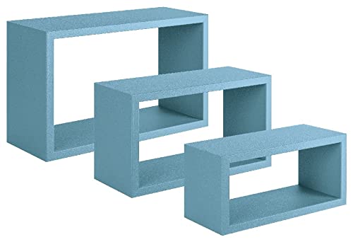 Homemania HOMSAN_106 Trittico hylla väggdekoration-vardagsrum, sovrum, skrivbord-MDF, blå 45 X 27 X 15,5/40 X 22 X 15,5/35 x 17 X 15,5