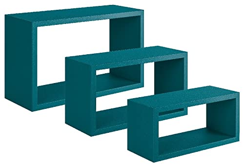 Homemania Trittico väggdekoration hylla - vardagsrum, sovrum, kontor - MDF, blå 45 x 27 X 15,5/40 X 22 X 15,5/35 X 17 X 15,5