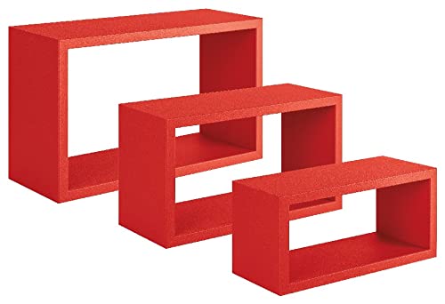 Homemania Inkubo väggdekoration hylla - vardagsrum, sovrum, kontor - MDF, röd 35 X 35 X 15,5/30 x 30 X 15,5/25 X 25 X 15,5