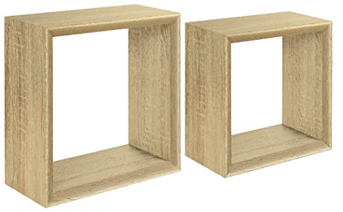 Homemania HOMSAN_129 Ginevra hylla väggdekoration-vardagsrum, sovrum, kontor-MDF, Sagerau ek 35 X 35 X 15,5/30 X 30 X 15,5